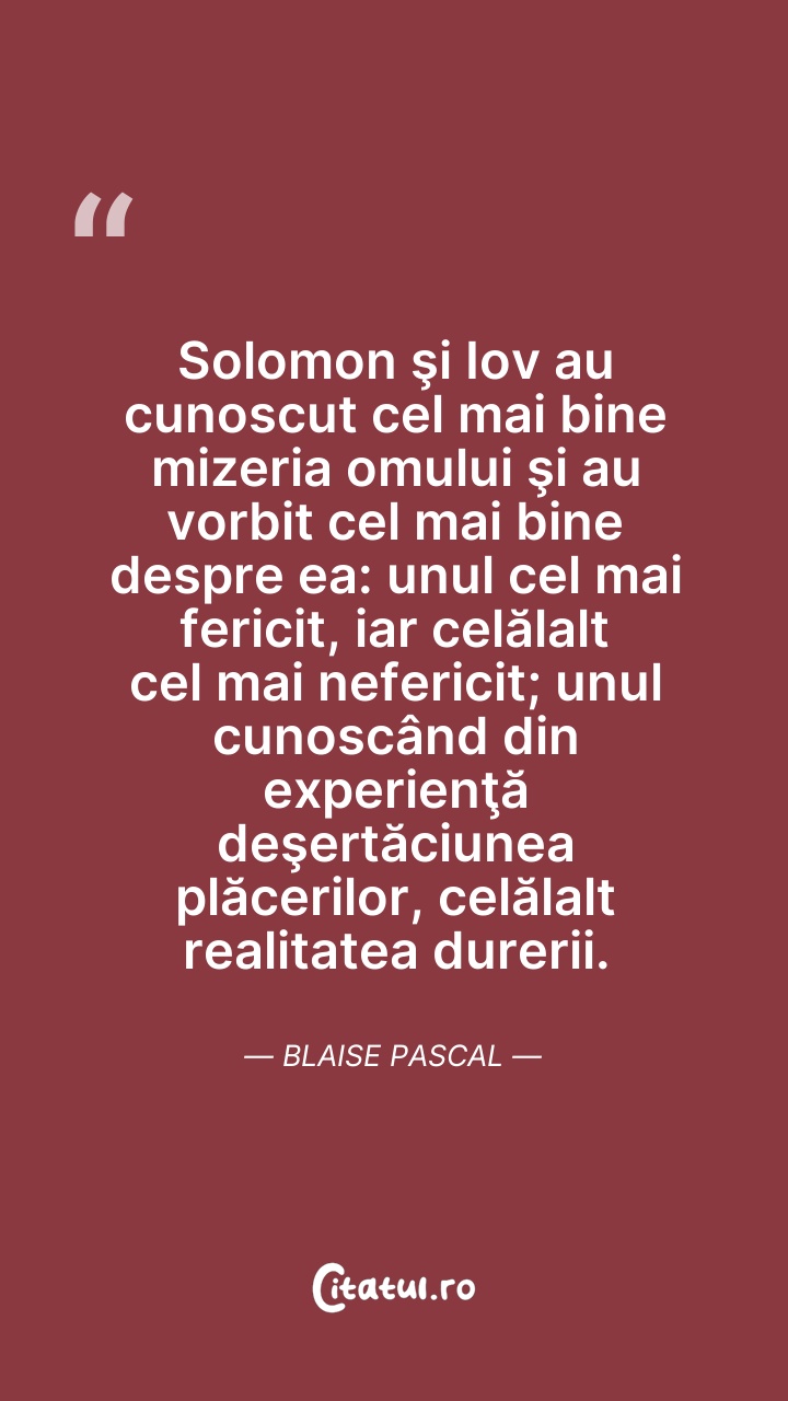 Solomon şi Iov au cunoscut cel mai bine mizer ... Citește tot citatul >