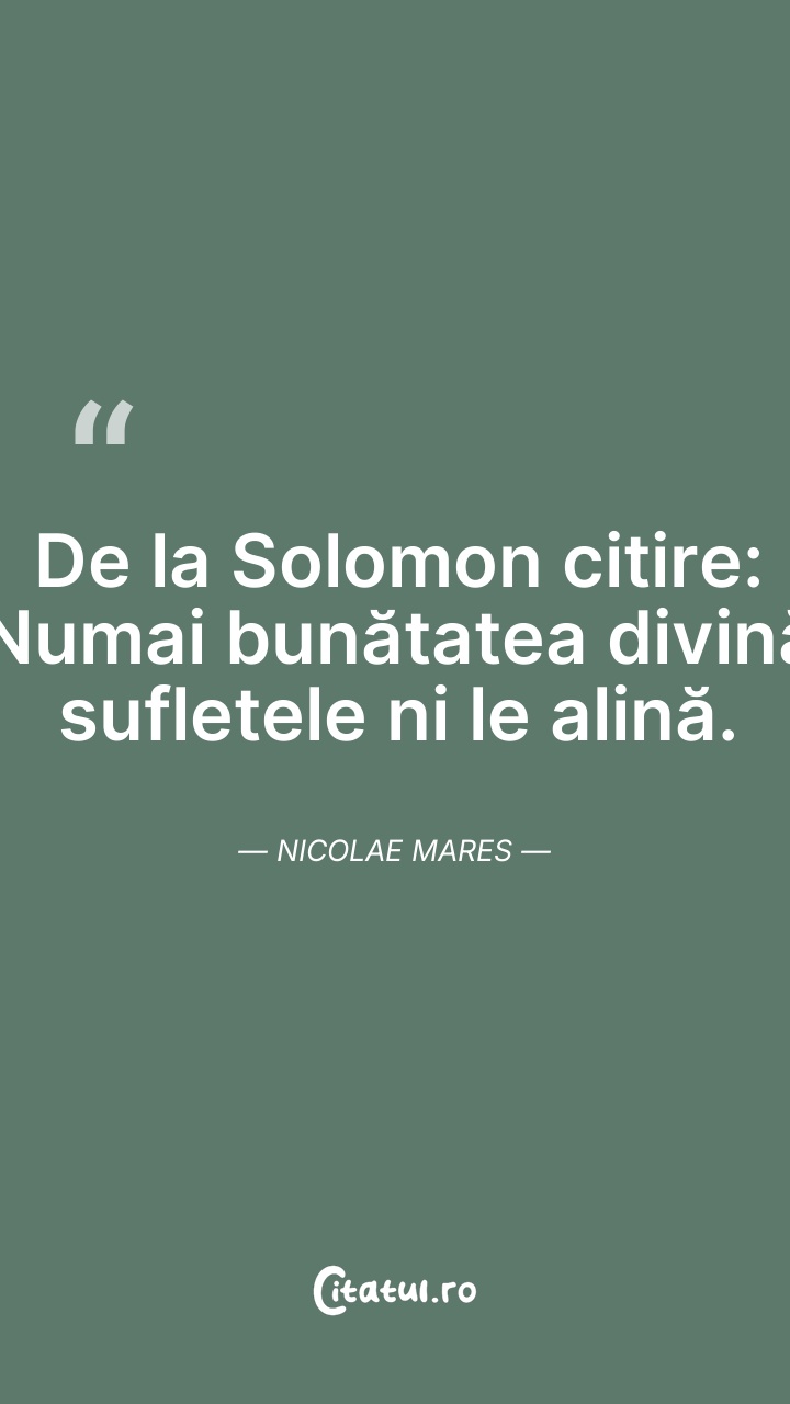 De la Solomon citire: Numai bunătatea divină ... Citește tot citatul >