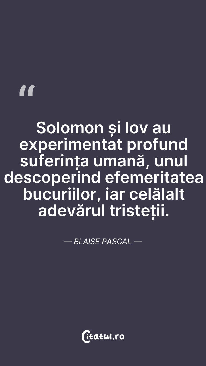 Solomon și Iov au experimentat profund suferi ... Citește tot citatul >