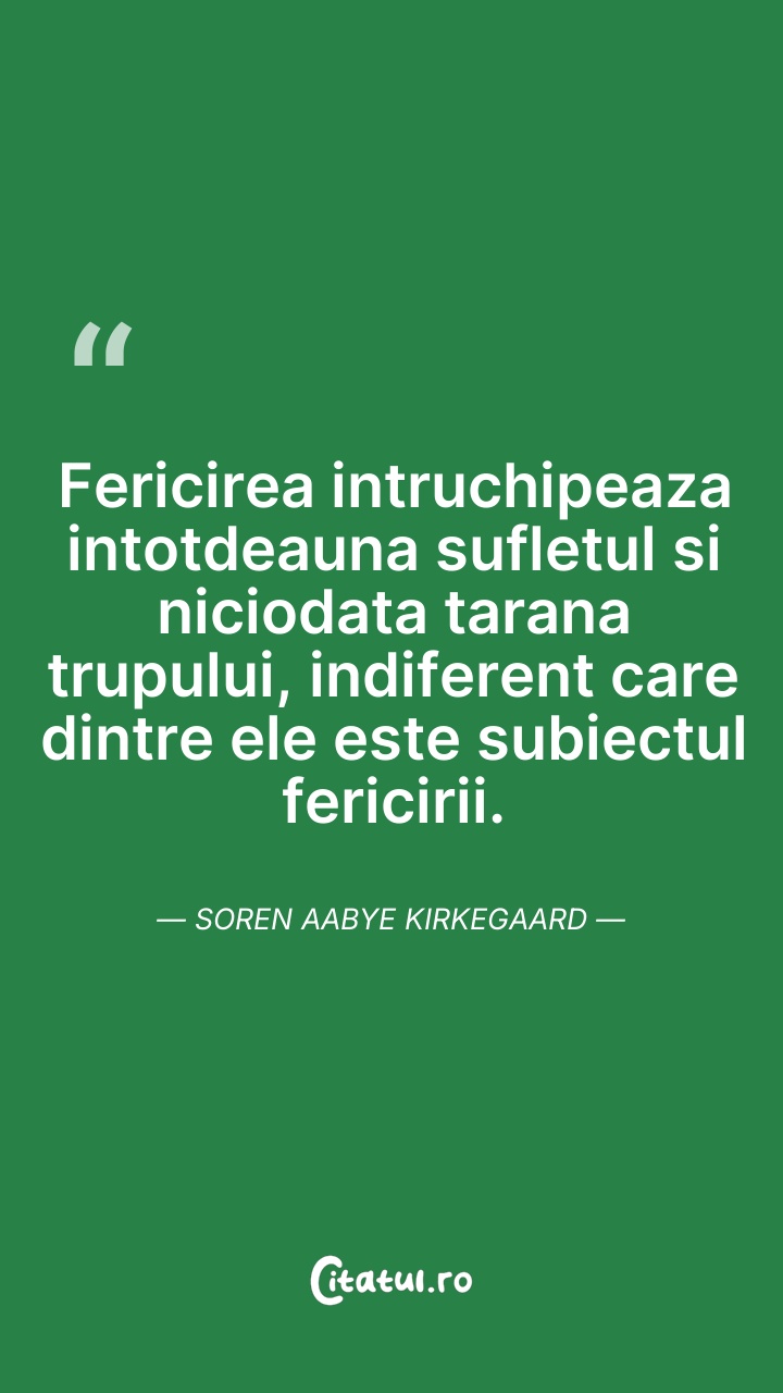 Fericirea intruchipeaza intotdeauna sufletul ... Citește tot citatul >