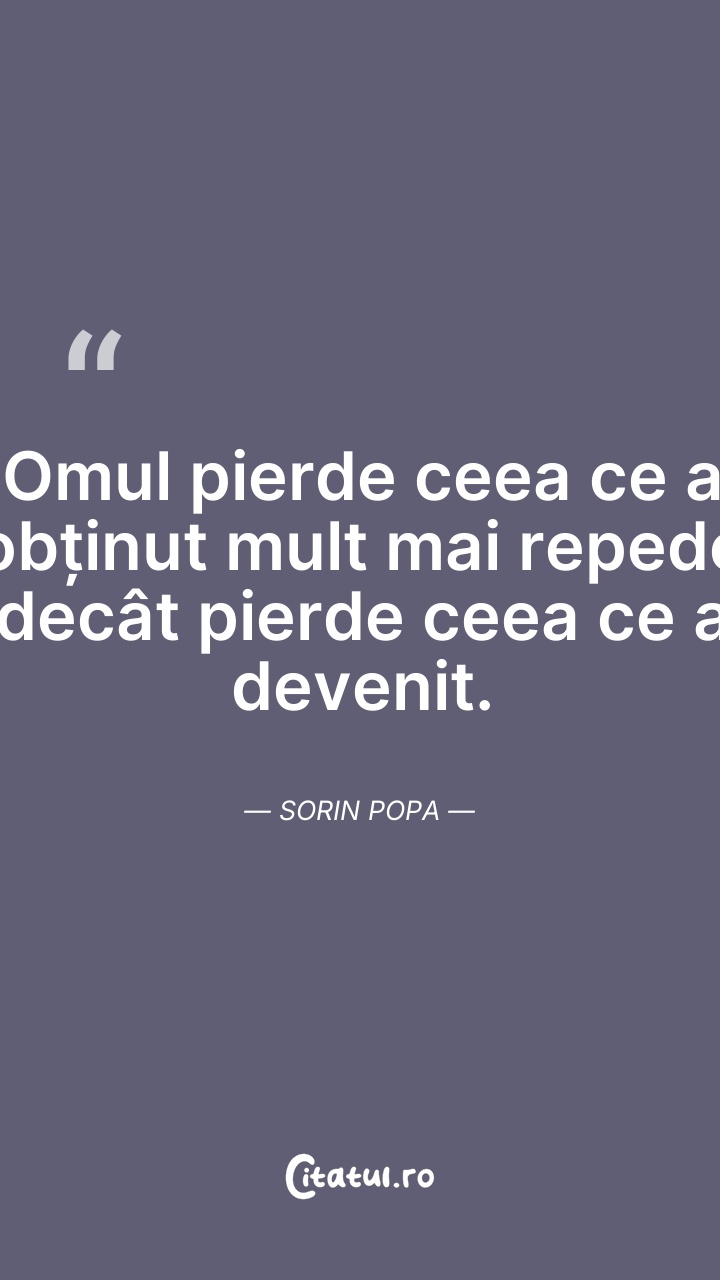 Omul pierde ceea ce a obținut mult mai repede ... Citește tot citatul >