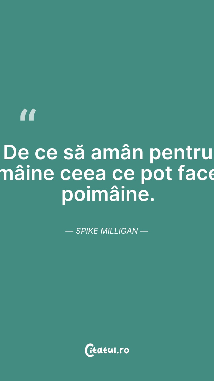 De ce să amân pentru mâine ceea ce pot face p ... Citește tot citatul >