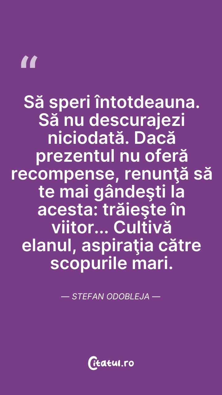 Să speri întotdeauna. Să nu descurajezi nicio ... Citește tot citatul >