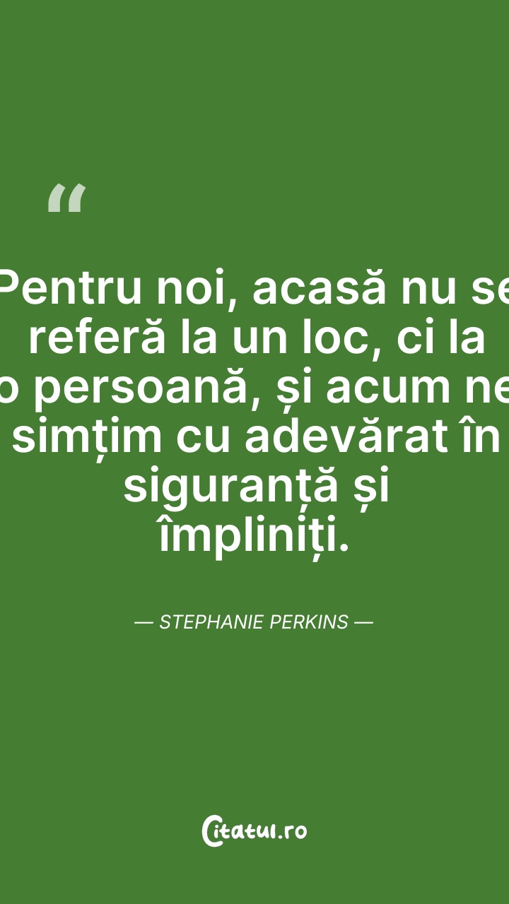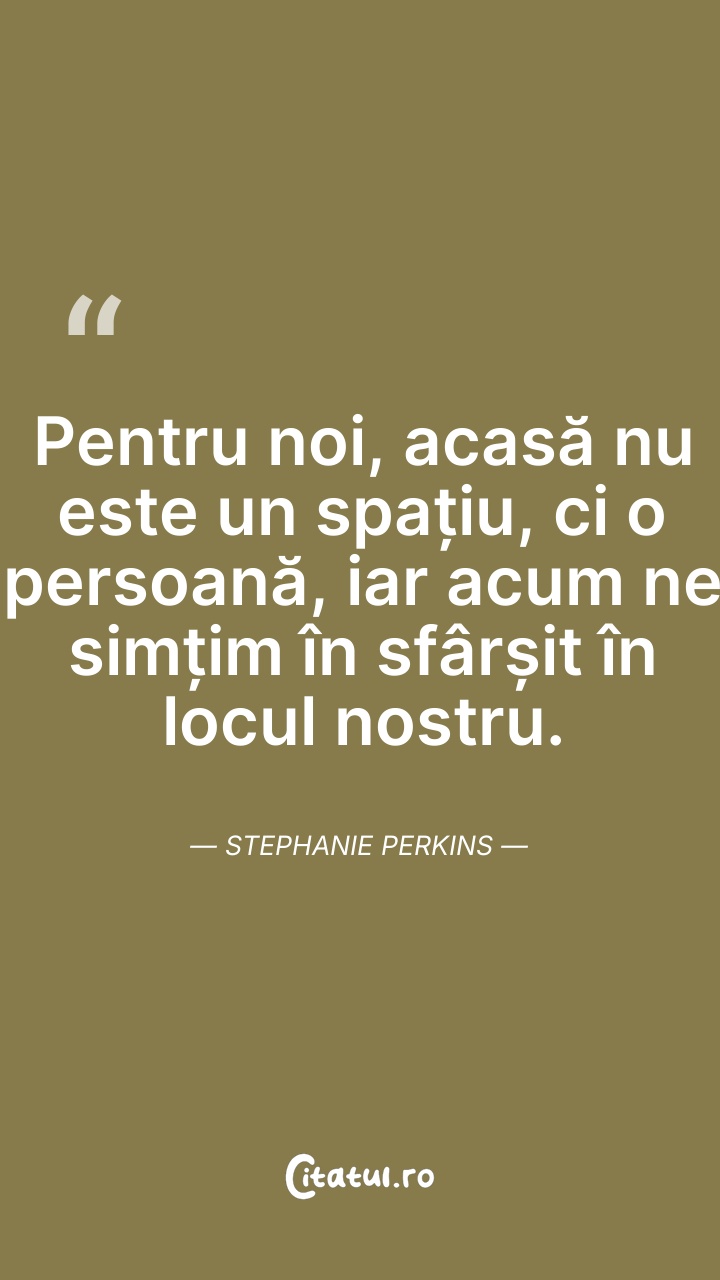 Pentru noi, acasă nu se referă la un loc, ci ... Citește tot citatul >
