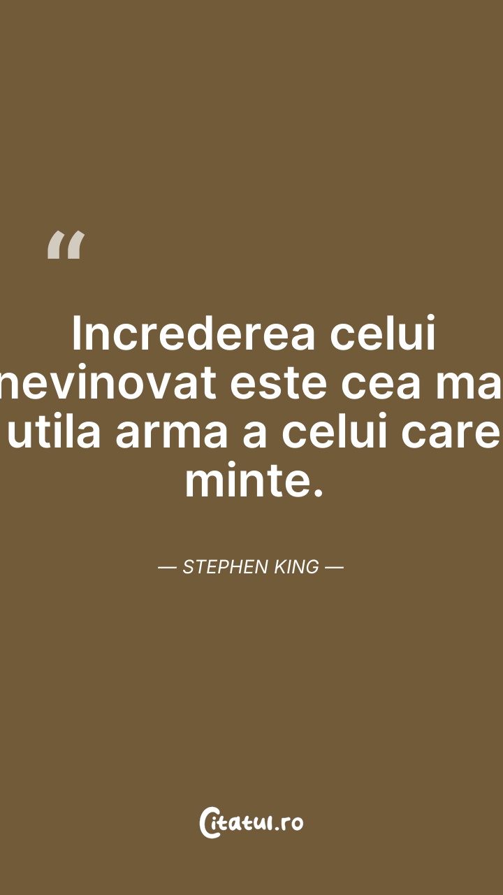 Stephen Edwin King este un autor american celebru prin romanele sale horror, acestea fiind ecranizate aproape în totalitate pe micul sau marele ecran. A scris câteva lucrări sub pseudonimul Richard Bachman.