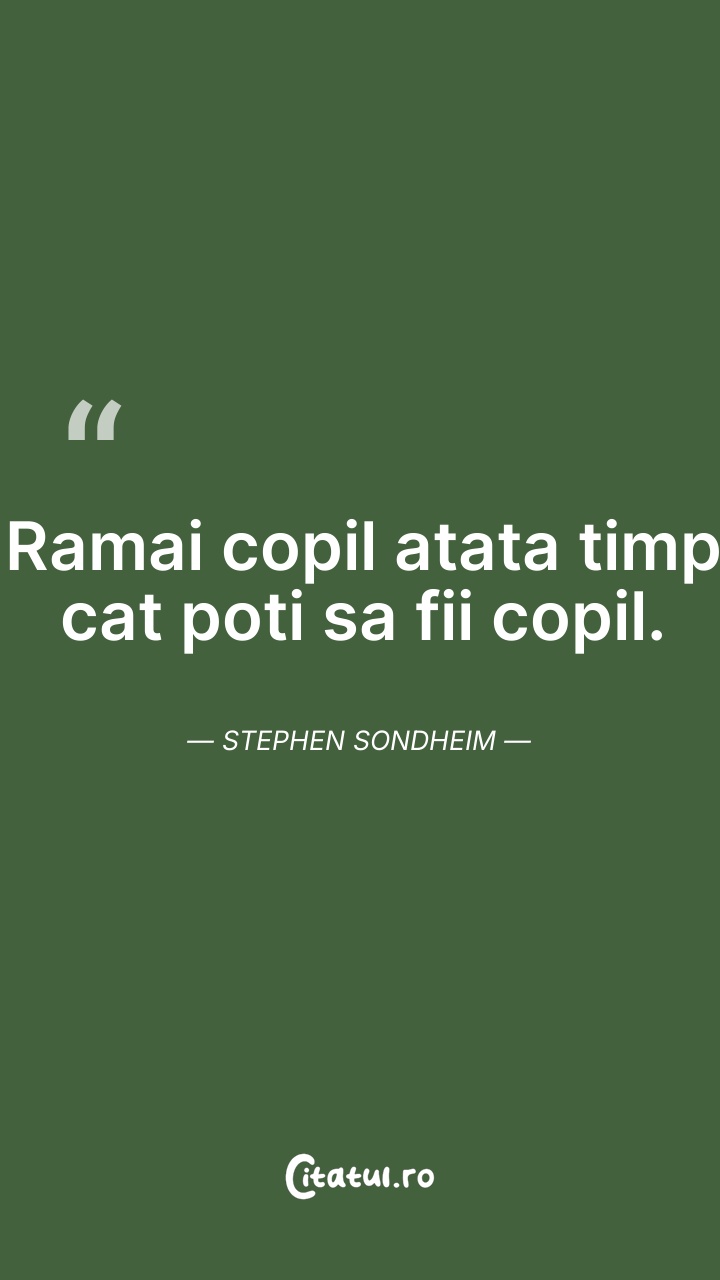 Ramai copil atata timp cat poti sa fii copil. ... Citește tot citatul >