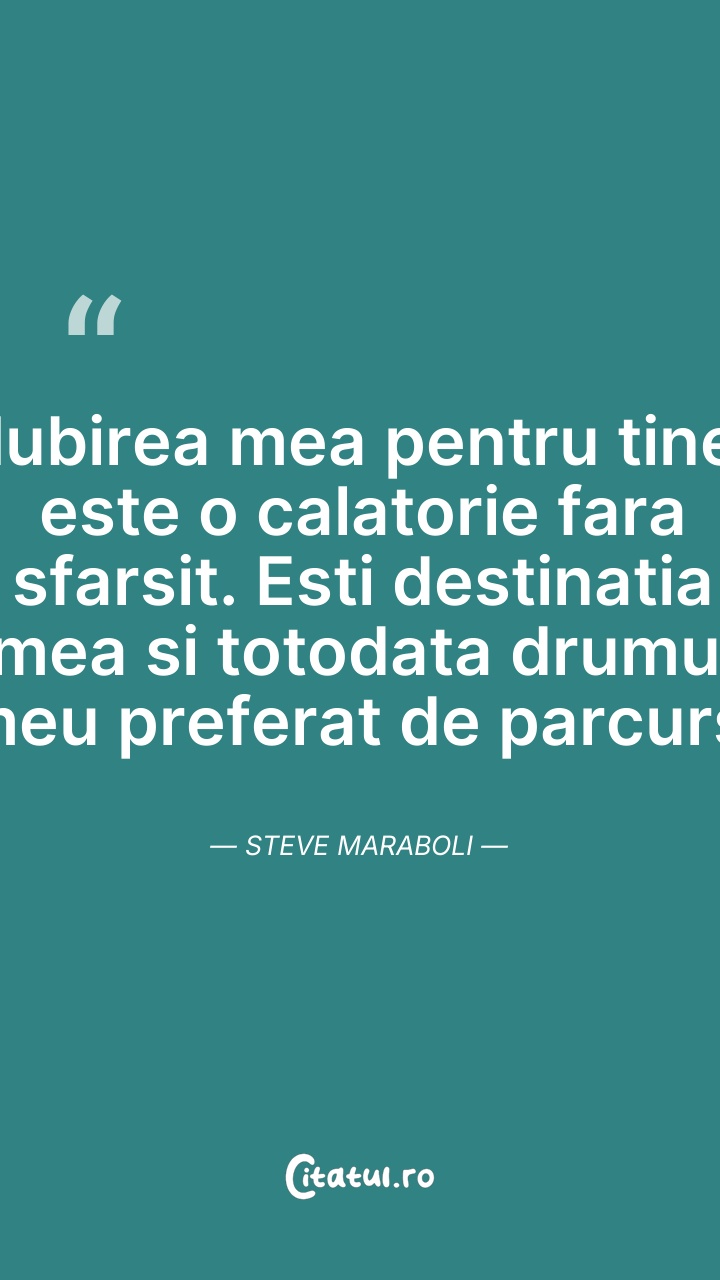Iubirea mea pentru tine este o calatorie fara ... Citește tot citatul >