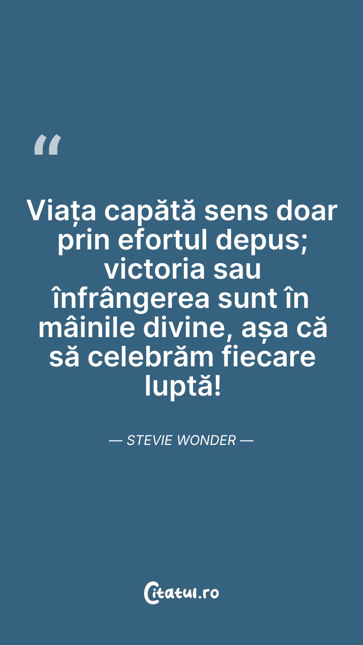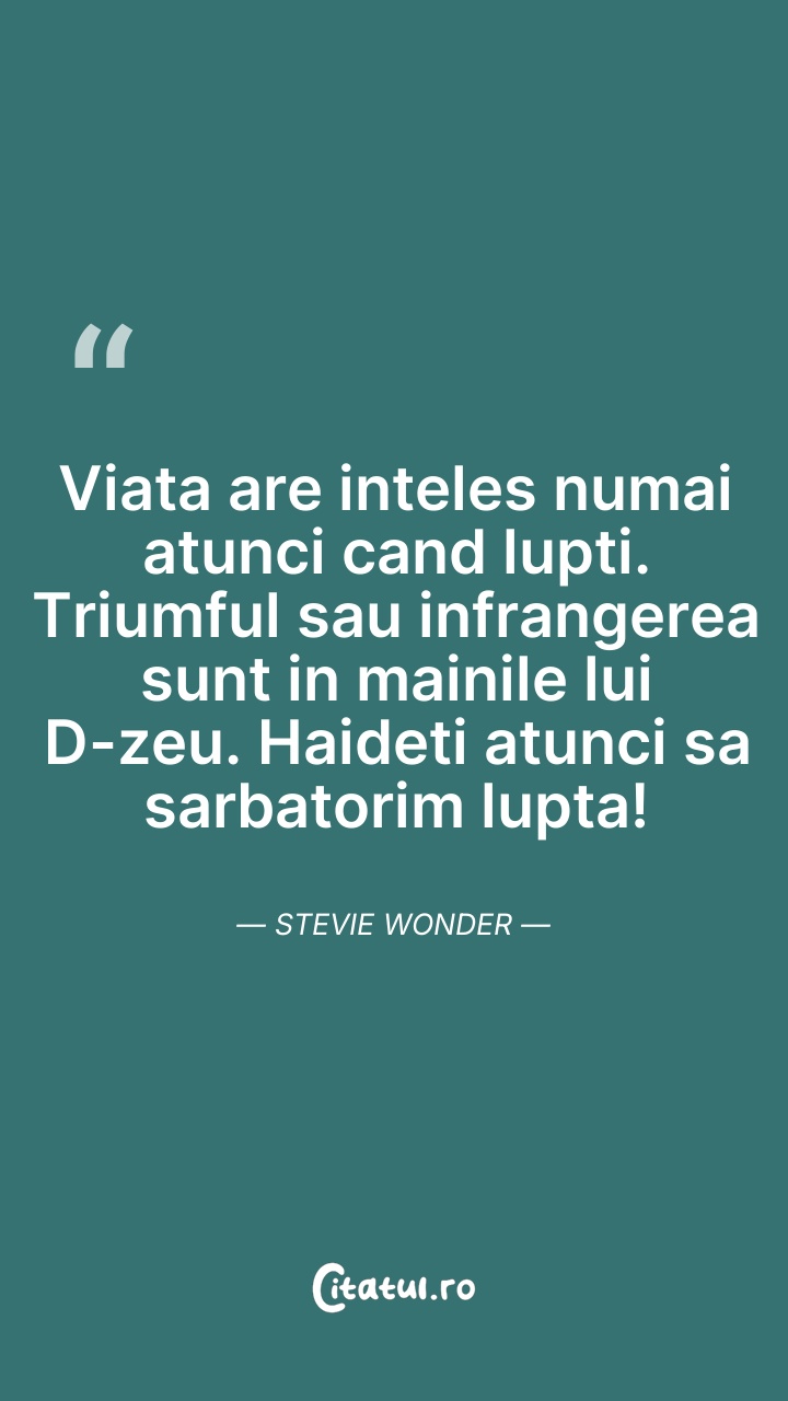 Viata are inteles numai atunci cand lupti. Tr ... Citește tot citatul >