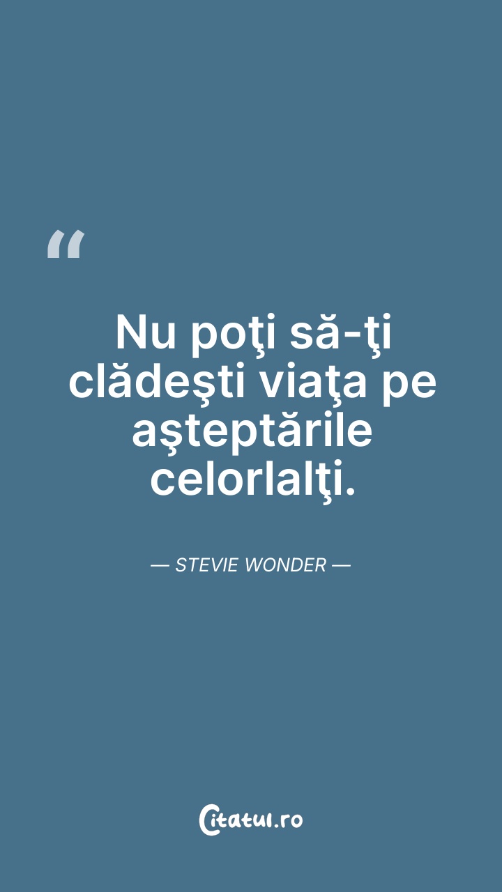 Nu poţi să-ţi clădeşti viaţa pe aşteptările c ... Citește tot citatul >
