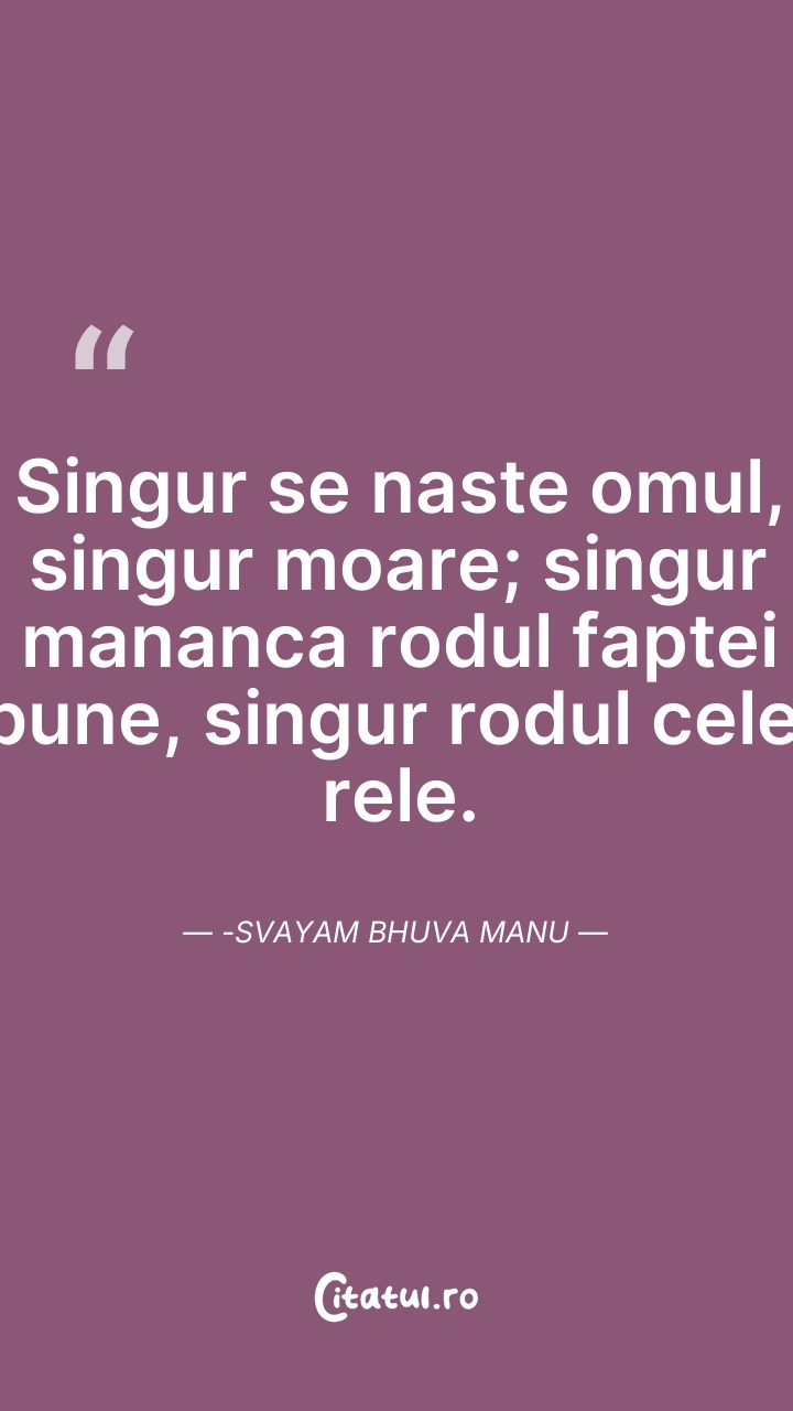 Singur se naste omul, singur moare; singur ma ... Citește tot citatul >