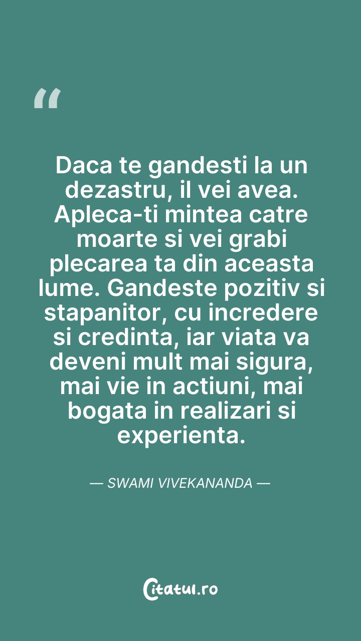 Swami Vivekananda a fost un călugăr hindus și un însemnat lider spiritual indian al secolului al XIX-lea. El a fost unul dintre cei mai de seamă discipoli ai misticului indian Sri Ramakrishna. A promovat ideea unității religioase și a propagat filosofia Vedanta în Occident.