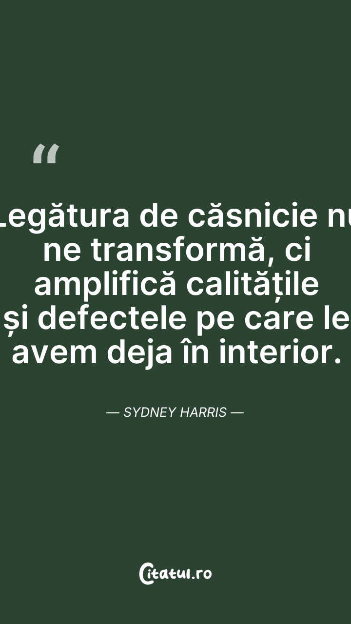 Legătura de căsnicie nu ne transformă, ci amp ... Citește tot citatul >