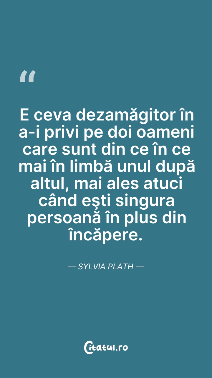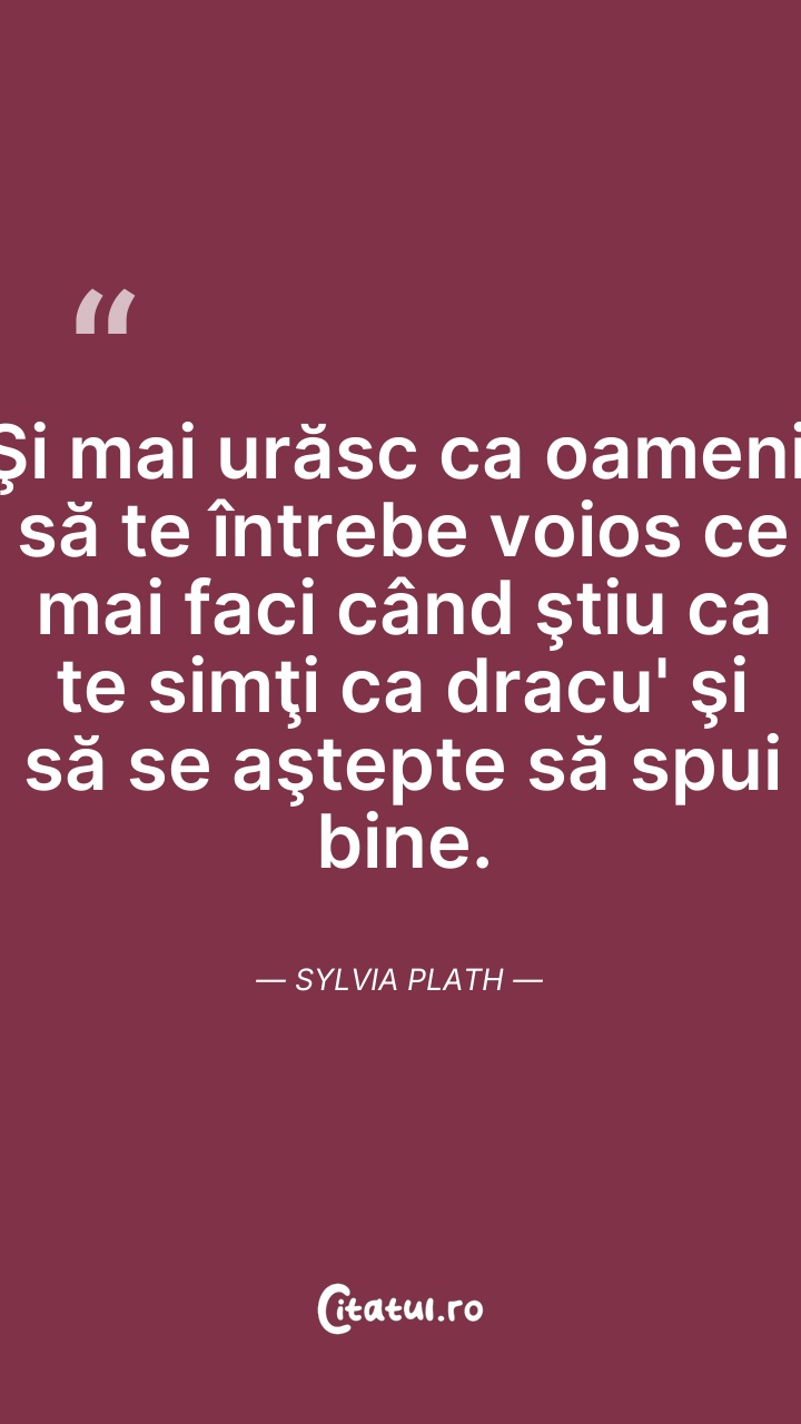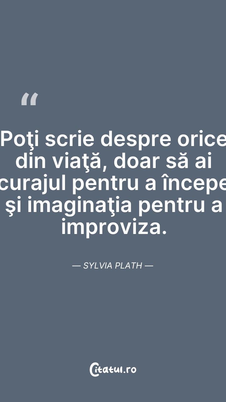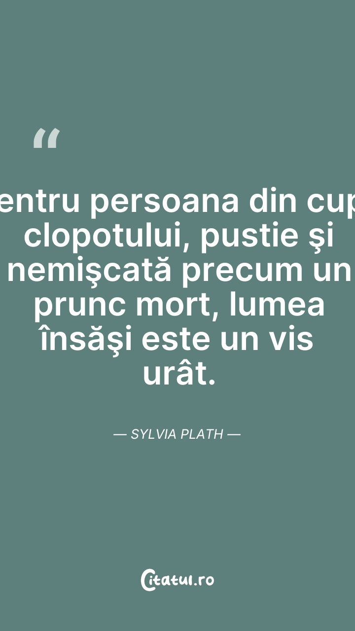 Sylvia Plath a fost o poetă, romancieră și nuvelistă americană. Acesteia i se datorează avansarea poeziei de tip confesional și este cunoscută mai ales pentru două dintre colecțiile sale publicate, Colosul și alte poezii (1960) și Ariel (1965), precum și Clopotul de sticlă, un roman semi-autobiografic, publicat cu puțin timp înaintea de moartea sa, în 1963. Volumul „The Collected Poems” a fost publicat în 1981, incluzând multe poezii anterioare, nepublicate. Pentru această colecție, Plath a primit Premiul Pulitzer în poezie, în 1982, acest lucru făcând-o a patra persoană care primește această onoare postum.