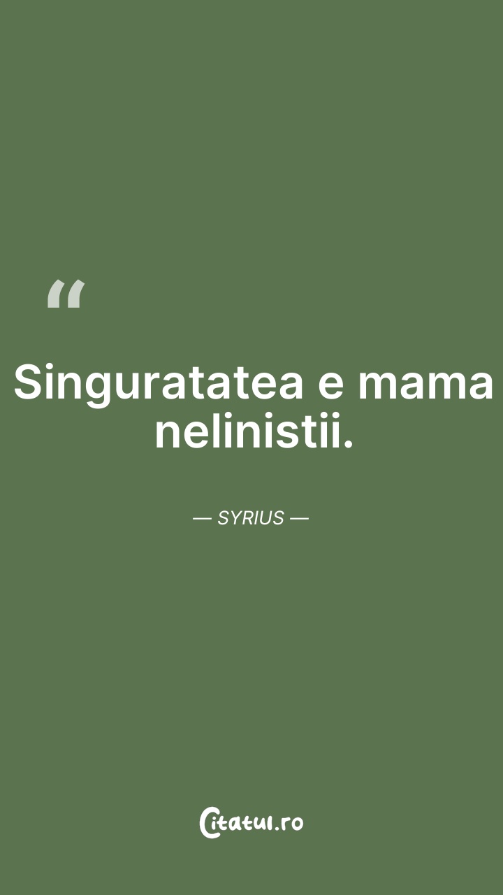 Singuratatea e mama nelinistii. Syrius