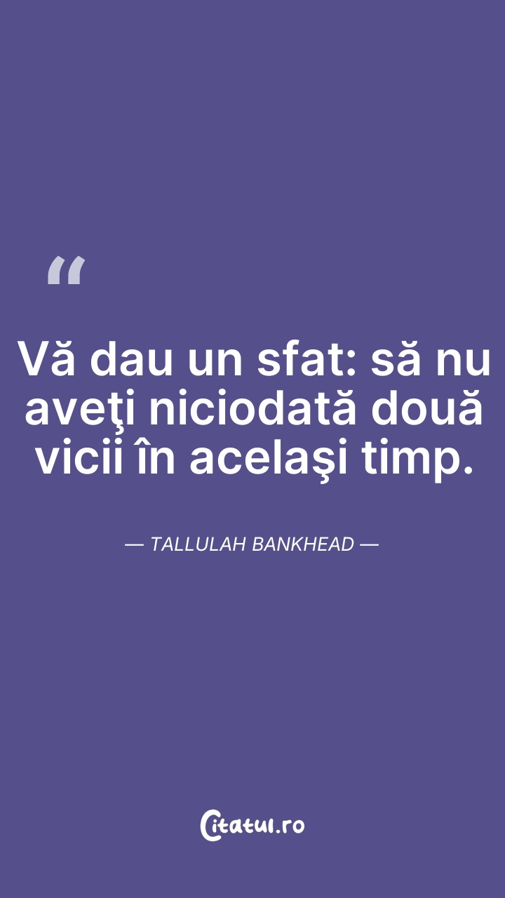 Vă dau un sfat: să nu aveţi niciodată două vi ... Citește tot citatul >