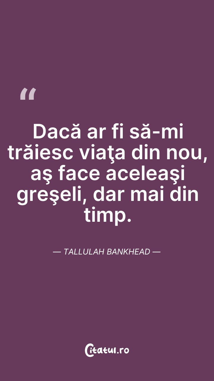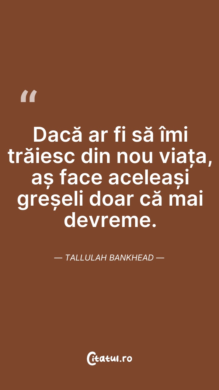 Dacă ar fi să-mi trăiesc viaţa din nou, aş fa ... Citește tot citatul >