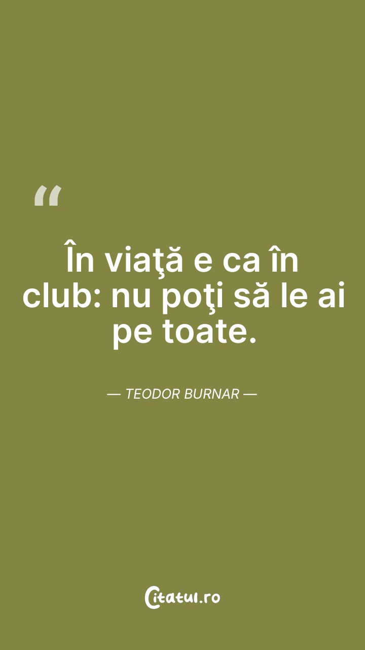 În viaţă e ca în club: nu poţi să le ai pe to ... Citește tot citatul >