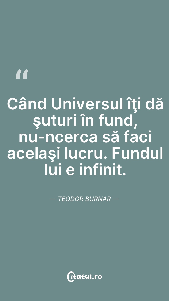 Când Universul îţi dă şuturi în fund, nu-ncer ... Citește tot citatul >