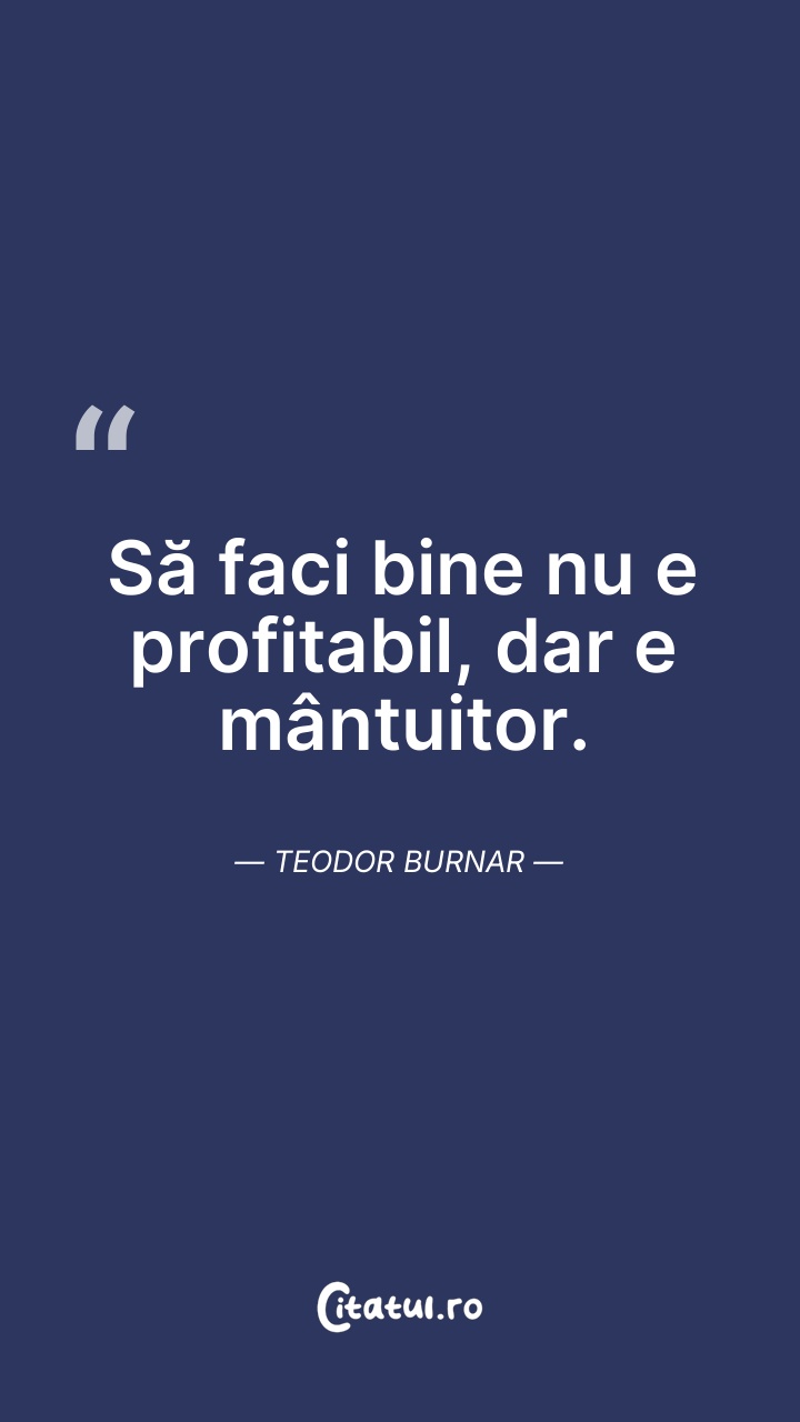 Să faci bine nu e profitabil, dar e mântuitor ... Citește tot citatul >