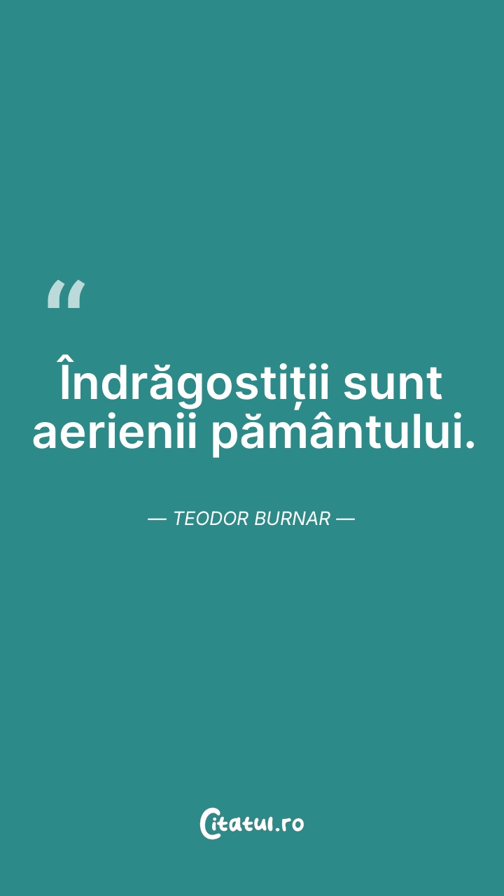Îndrăgostiții sunt aerienii pământului. Teodo ... Citește tot citatul >