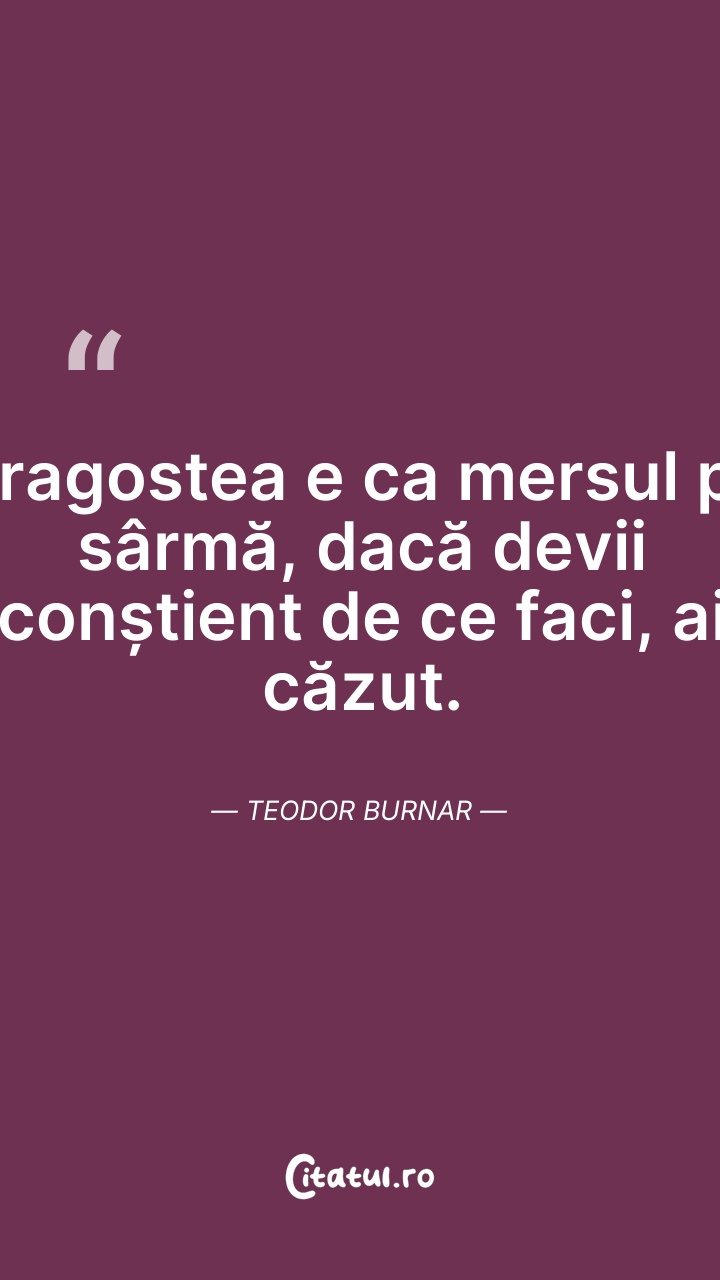 Dragostea e ca mersul pe sârmă, dacă devii co ... Citește tot citatul >