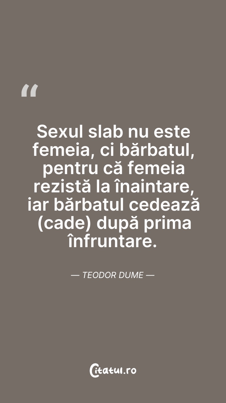 Sexul slab nu este femeia, ci bărbatul, pentr ... Citește tot citatul >