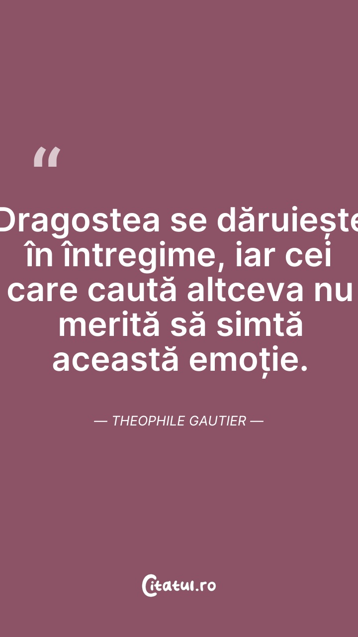 Dragostea se dăruiește în întregime, iar cei ... Citește tot citatul >