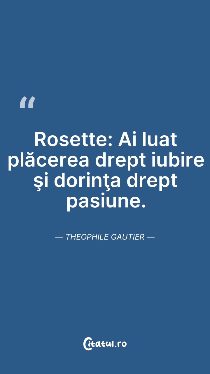Rosette: Ai luat plăcerea drept iubire şi dor ... Citește tot citatul >