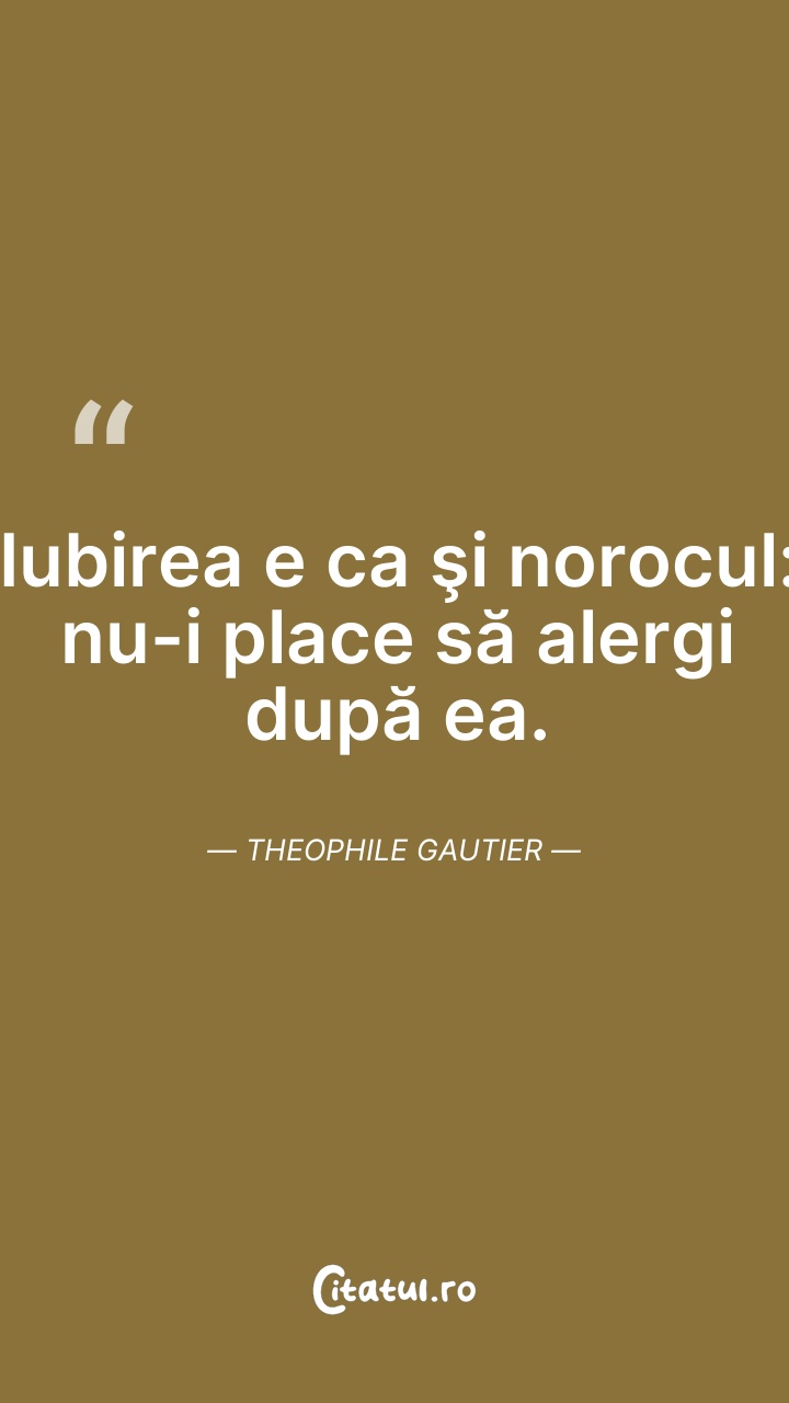 Iubirea e ca şi norocul: nu-i place să alergi ... Citește tot citatul >