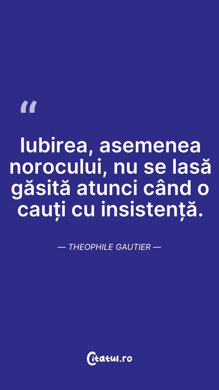 Iubirea, asemenea norocului, nu se lasă găsit ... Citește tot citatul >