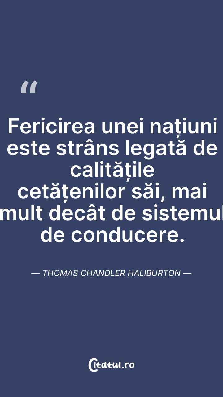 Fericirea unei națiuni este strâns legată de ... Citește tot citatul >