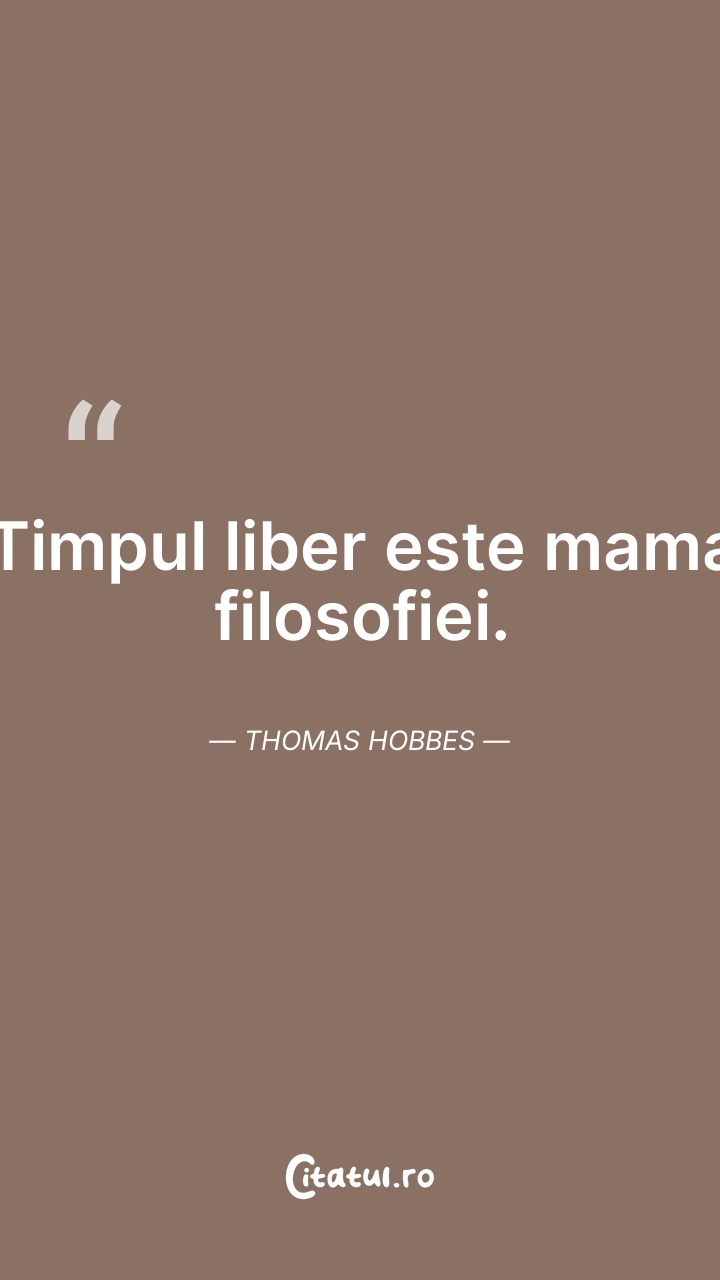 Timpul liber este mama filosofiei. Thomas Hob ... Citește tot citatul >