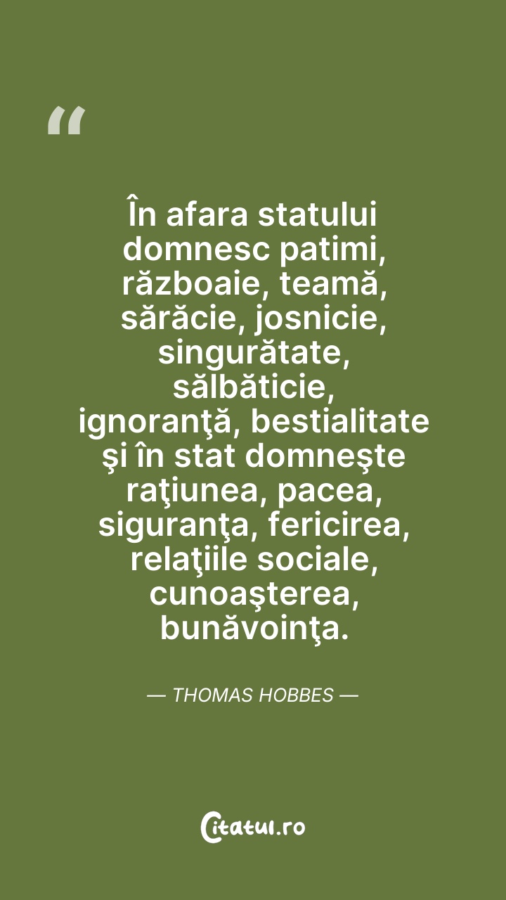 În afara statului domnesc patimi, războaie, t ... Citește tot citatul >