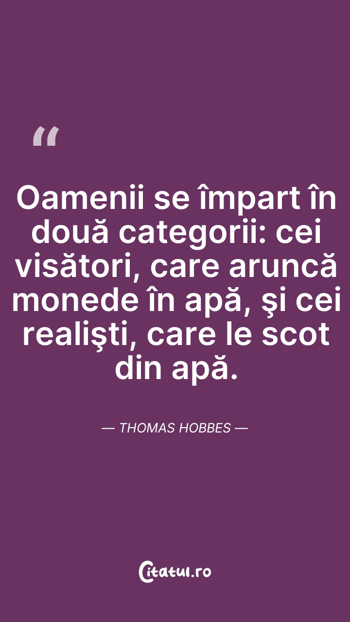 Oamenii se împart în două categorii: cei visă ... Citește tot citatul >
