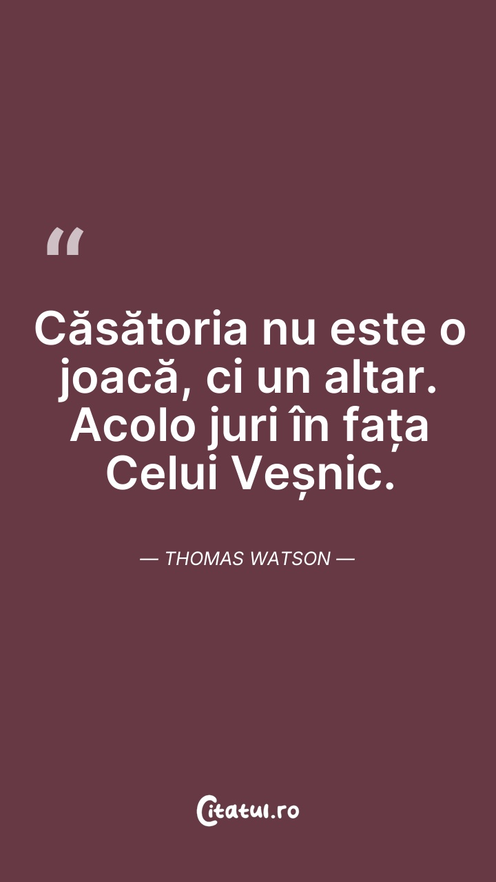 Căsătoria nu este o joacă, ci un altar. Acolo ... Citește tot citatul >