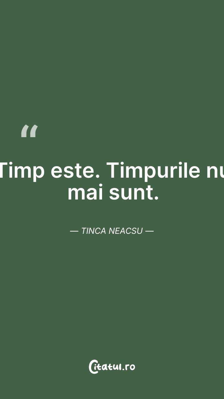 Timp este. Timpurile nu mai sunt. Tinca Neacs ... Citește tot citatul >