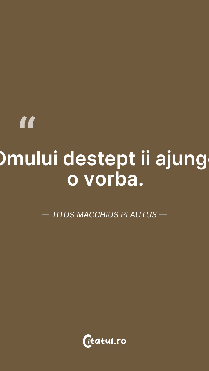 Omului destept ii ajunge o vorba. Titus Macch ... Citește tot citatul >