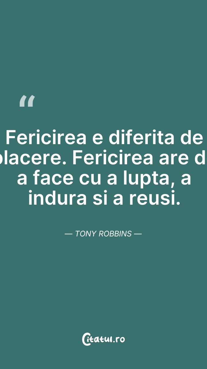 Fericirea e diferita de placere. Fericirea ar ... Citește tot citatul >