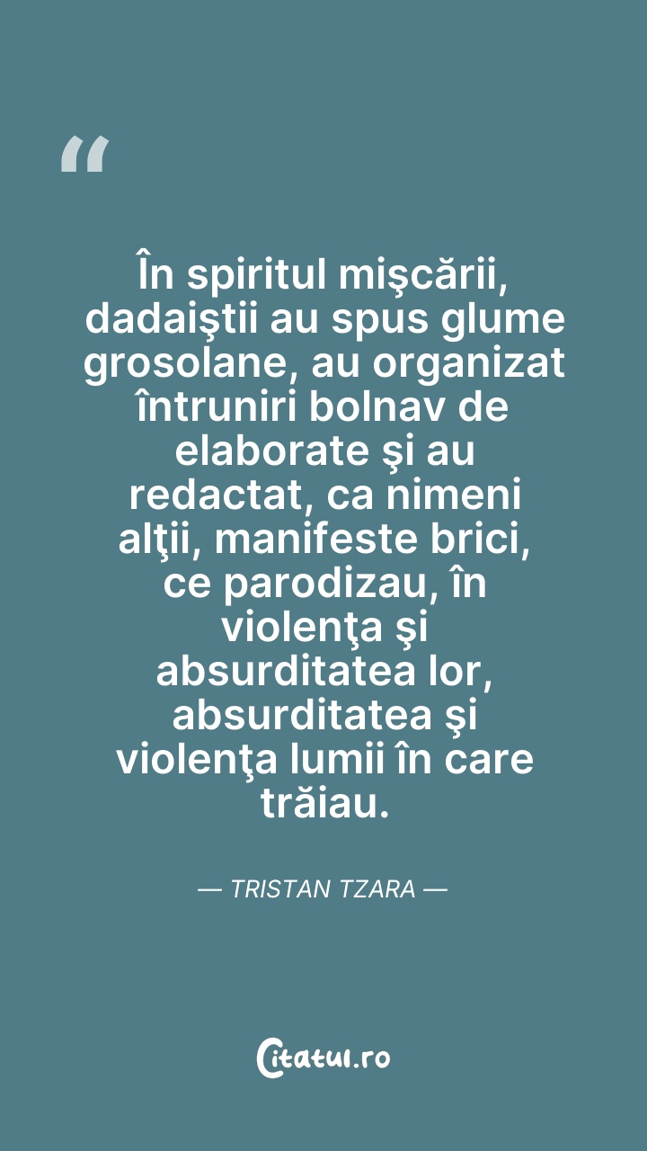 În spiritul mişcării, dadaiştii au spus glume ... Citește tot citatul >