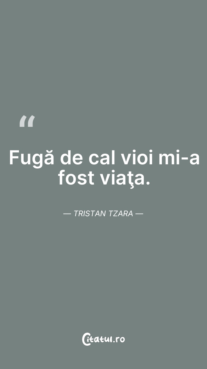 Fugă de cal vioi mi-a fost viaţa. Tristan Tza ... Citește tot citatul >