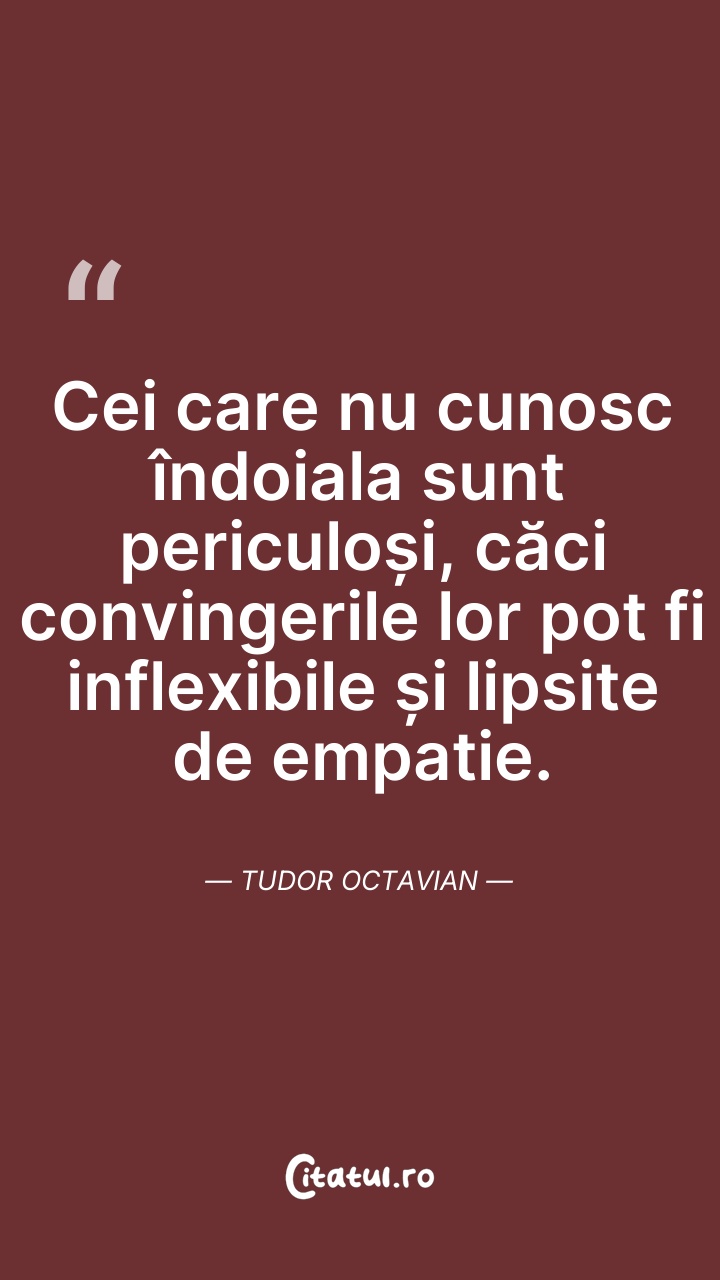 Cei care nu cunosc îndoiala sunt periculoși, ... Citește tot citatul >