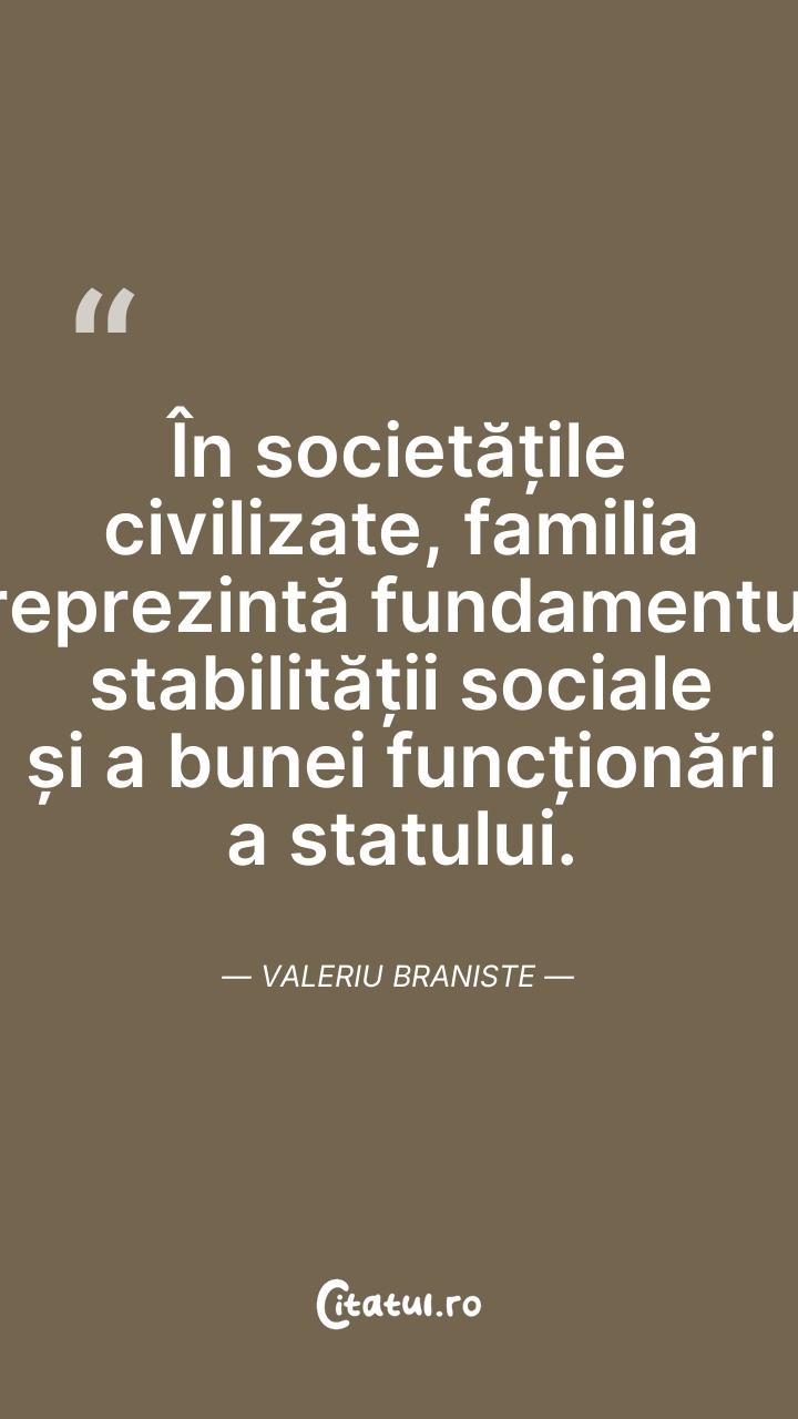 În societățile civilizate, familia reprezintă ... Citește tot citatul >