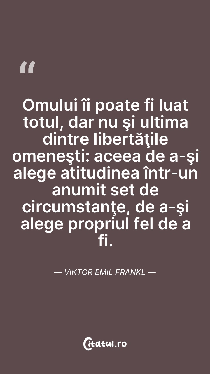 Omului îi poate fi luat totul, dar nu şi ulti ... Citește tot citatul >