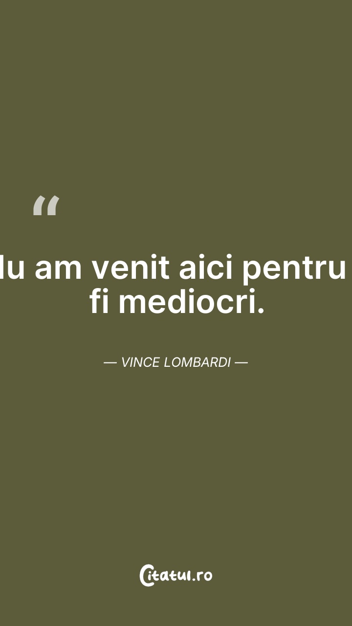 Nu am venit aici pentru a fi mediocri. Vince ... Citește tot citatul >