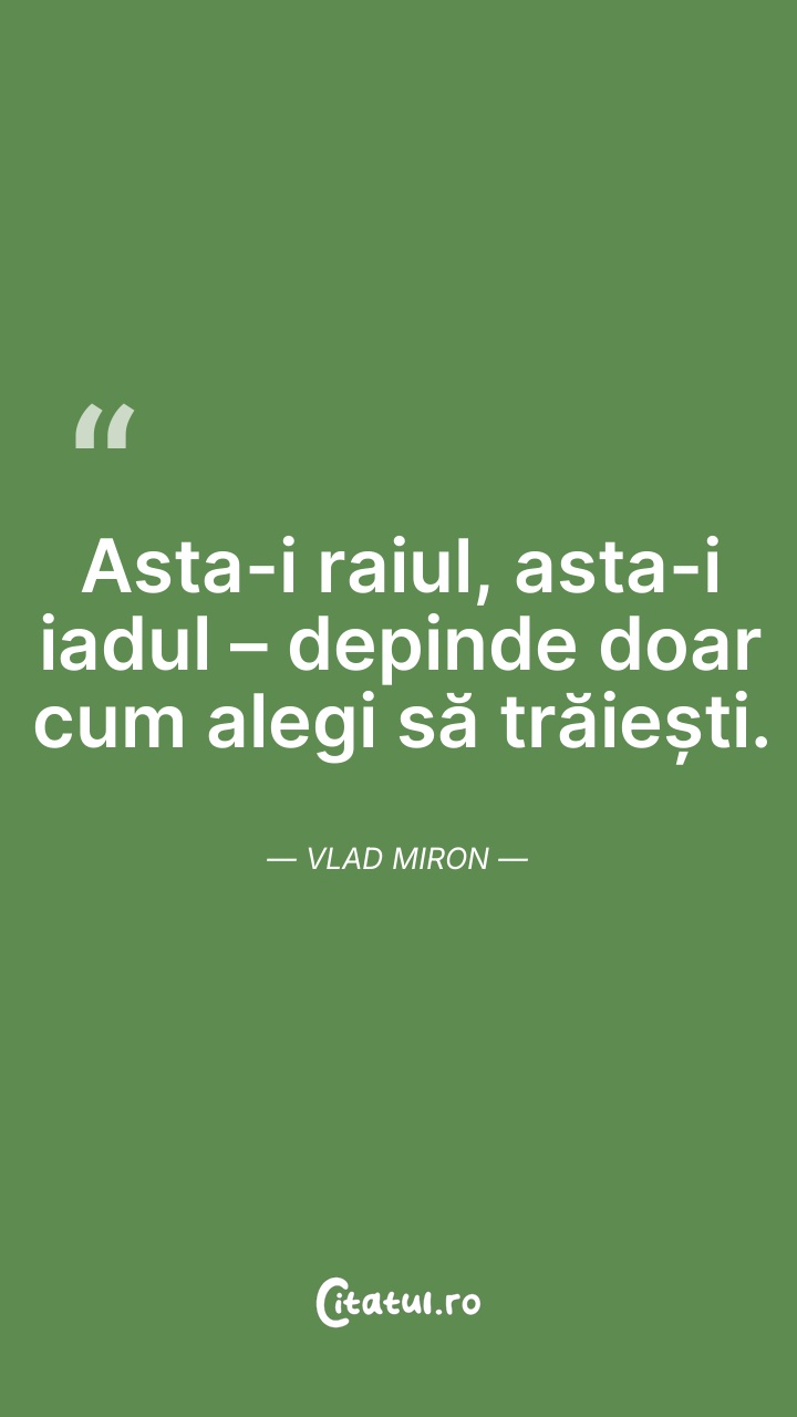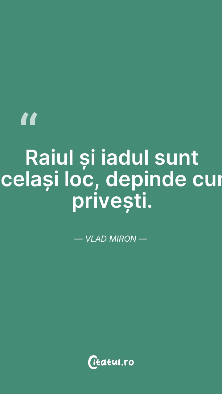Asta-i raiul, asta-i iadul – depinde doar cum ... Citește tot citatul >