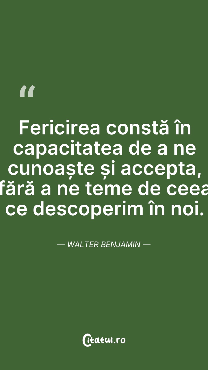 Fericirea constă în capacitatea de a ne cunoa ... Citește tot citatul >