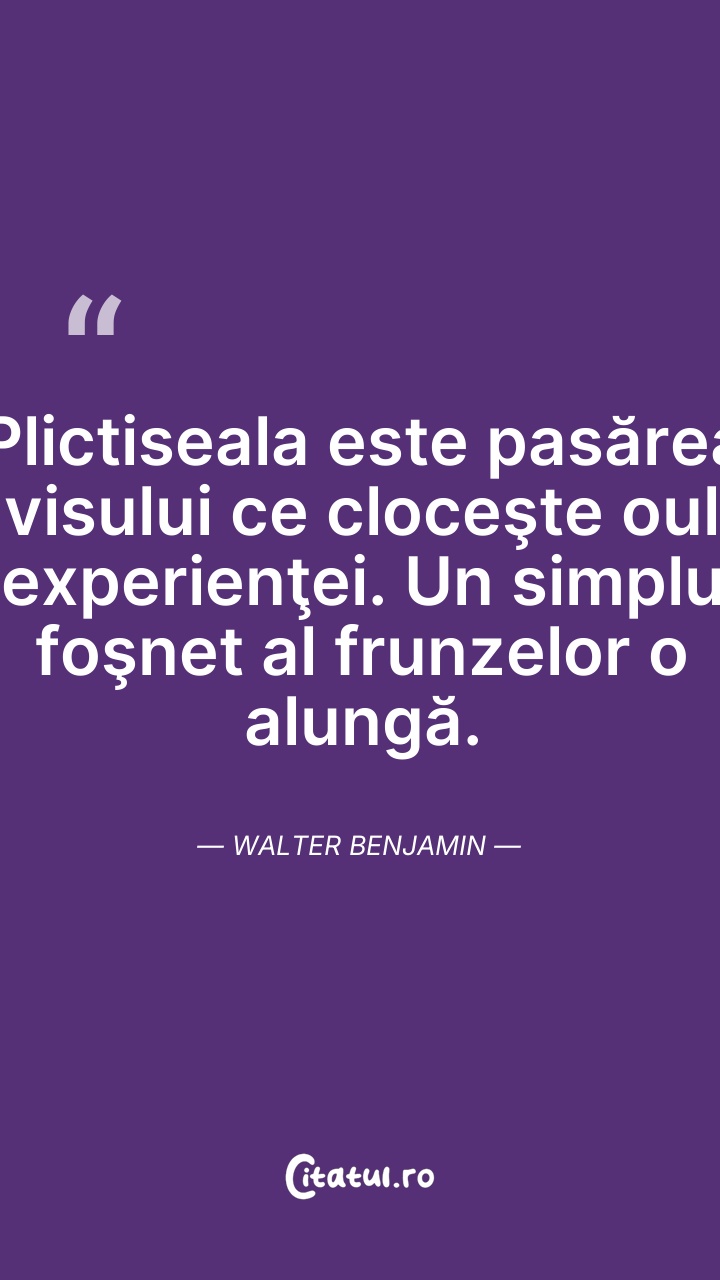 Plictiseala este pasărea visului ce cloceşte ... Citește tot citatul >