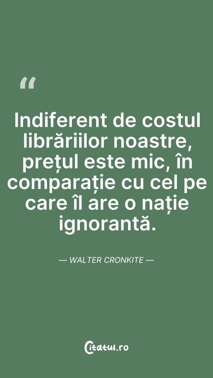 Indiferent de costul librăriilor noastre, pre ... Citește tot citatul >