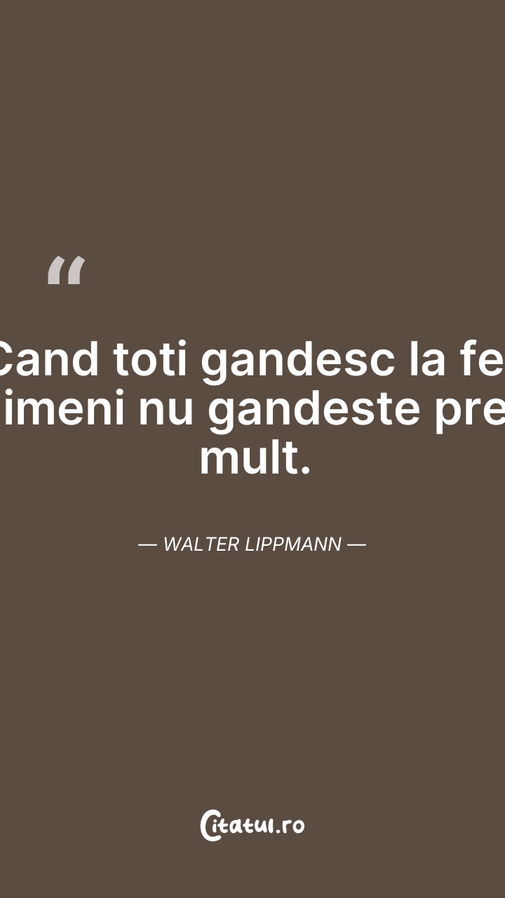 Cand toti gandesc la fel, nimeni nu gandeste ... Citește tot citatul >