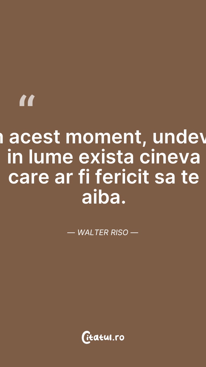 In acest moment, undeva in lume exista cineva ... Citește tot citatul >